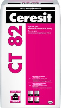 Смесь Ceresit CT 82 предназначена для приклеивания теплоизоляционных материалов (пенополистирольных / минераловатных плит) и выполнения защитного армированного слоя при утеплении фасадов зданий и сооружений. Ceresit CT 82 является составной частью систем утепления наружных стен зданий Ceresit на базе пенополистирольных и минераловатных плит. Применяется при утеплении по кирпичным, бетонным, оштукатуренным и другим минеральным поверхностям новых зданий, а также зданий, находя щихся в эксплуатации.