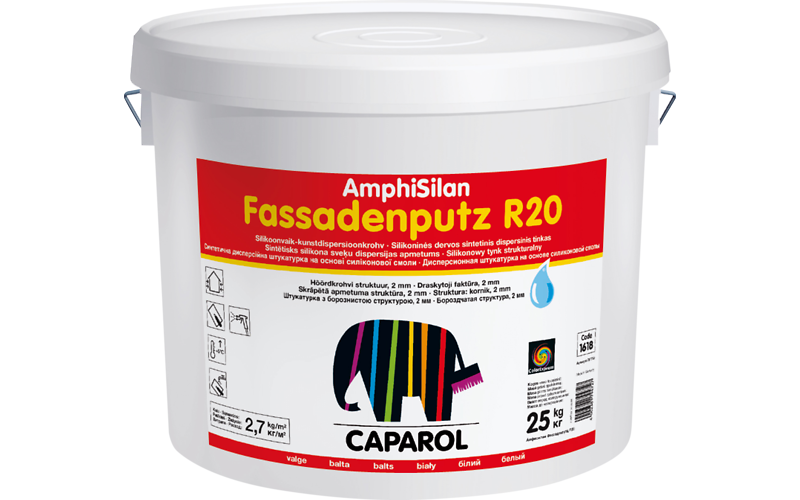 Готовая к применению дисперсионная декоративно-защитная штукатурка. Фактура "Камешки" зерно 2 мм. Расход ок. 3,3 кг/м2.