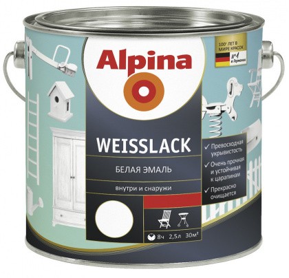 Alpina Aqua Weisslack обеспечивает долговременную защиту окрашенной поверхности от истирания и пожелтения.