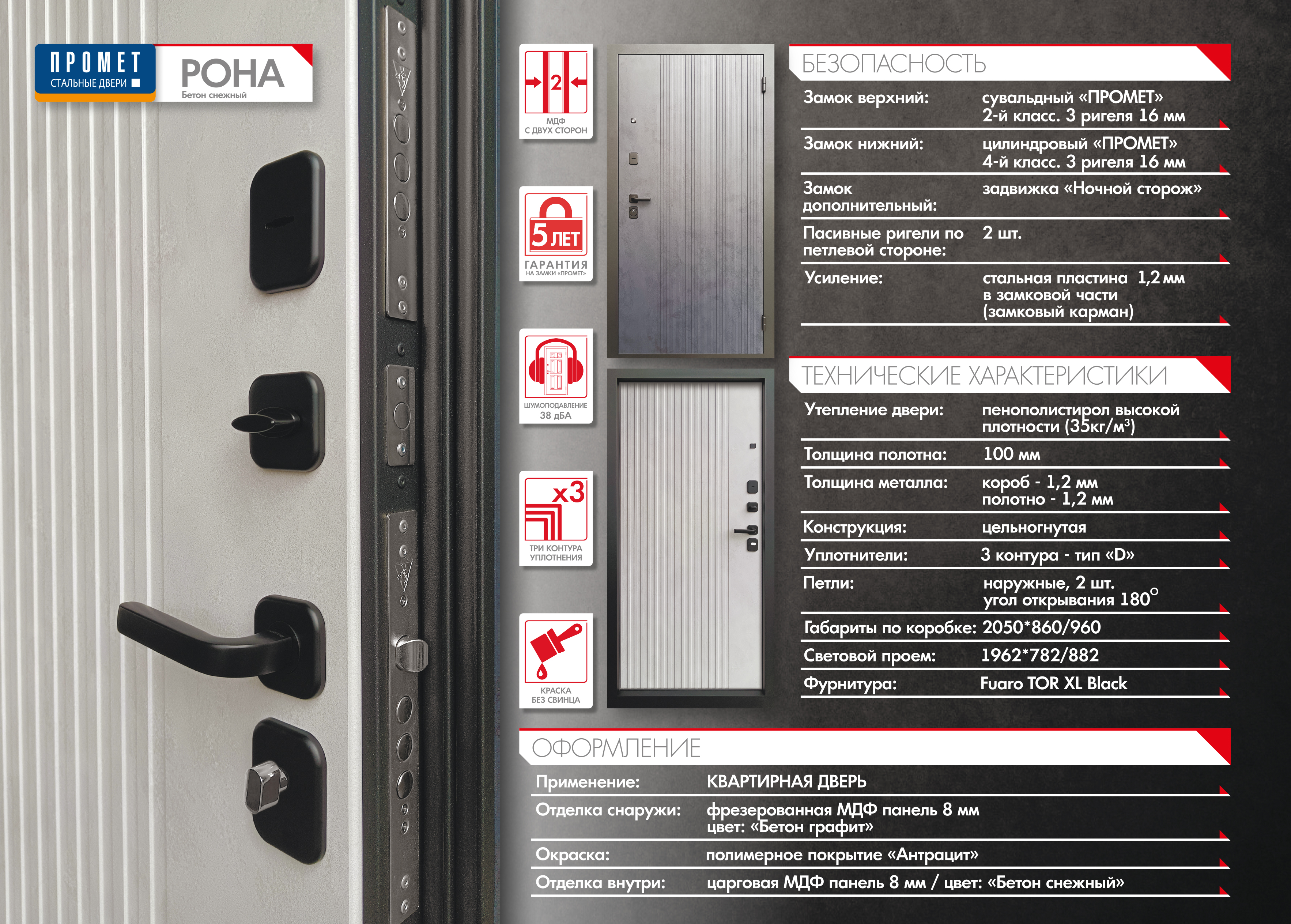 Замки (2 шт.) Верхний - сувальдный "ПРОМЕТ", 3 ригеля 16 мм, РФ (4-й класс взломостойкости)