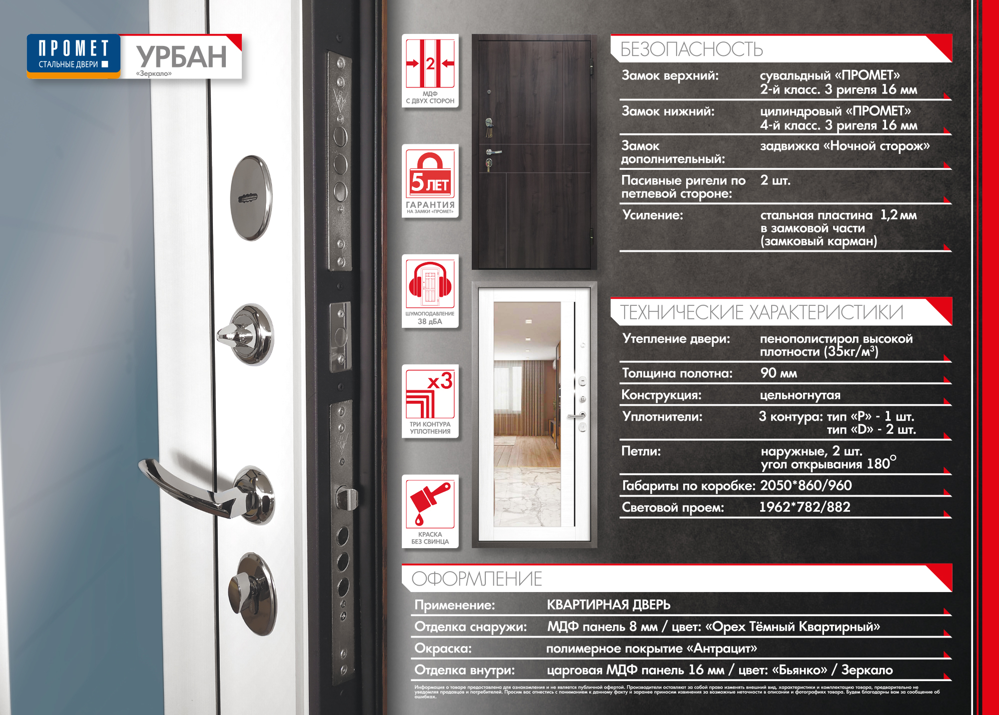 Замки (2 шт.) Верхний - сувальдный "ПРОМЕТ", 3 ригеля 16 мм, РФ (4-й класс взломостойкости)