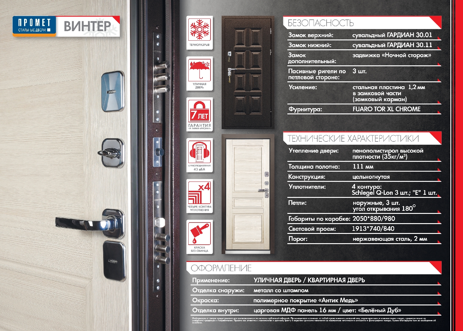 Верхний — сувальдный «ГАРДИАН 30.01» РФ (4-й класс взломостойкости), Нижний — сувальдный «ГАРДИАН 30.11» РФ (4-й класс взломостойкости), Средний — задвижка «Ночной сторож»