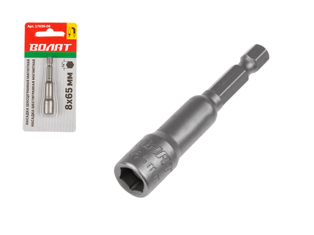 Насадка шестигранная магнитная 8х65мм ВОЛАТ (17030-08) для общестроительных и сборочных работ при сборке мебели, металлоконструкций и других работах с крепежом. Магнит повышает удобство монтажа.