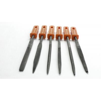Мини- напильники (надфили) длиной 150 мм, 6 штук, с пластиковыми рукоятками, длина ручки - 50 мм, длина стального наконечника –это рабочая часть напильника. Длина - 100 мм.