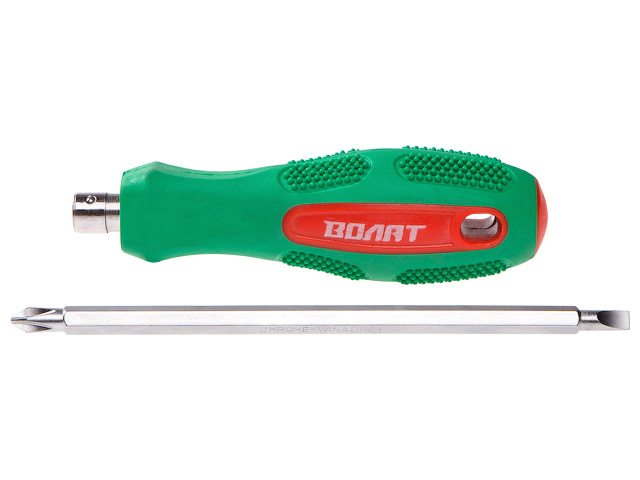 Отвертка комбинированная ВОЛАТ (17070-150) применяется при работе с крепежными изделиями, имеющими шлицевые головки. Имеет двухстороннюю насадку, изготовленную из легированной стали (PH2/SL5). Эргономичная рукоять увеличивает удобство при работе с инструментом.