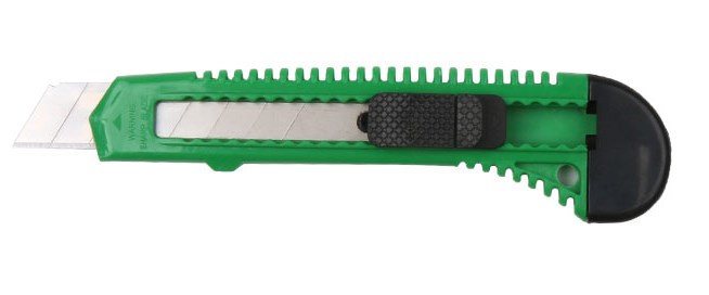 Нож строительный выдвижной 18 мм ВОЛАТ (24100) используется для разрезания картона, бумаги, полиэтилена, вскрытия упаковок. Оснащен лезвием из углеродистой инструментальной стали, фиксирующимся винтом, и направляющей из легированной стали. Ширина лезвий 18 мм.
